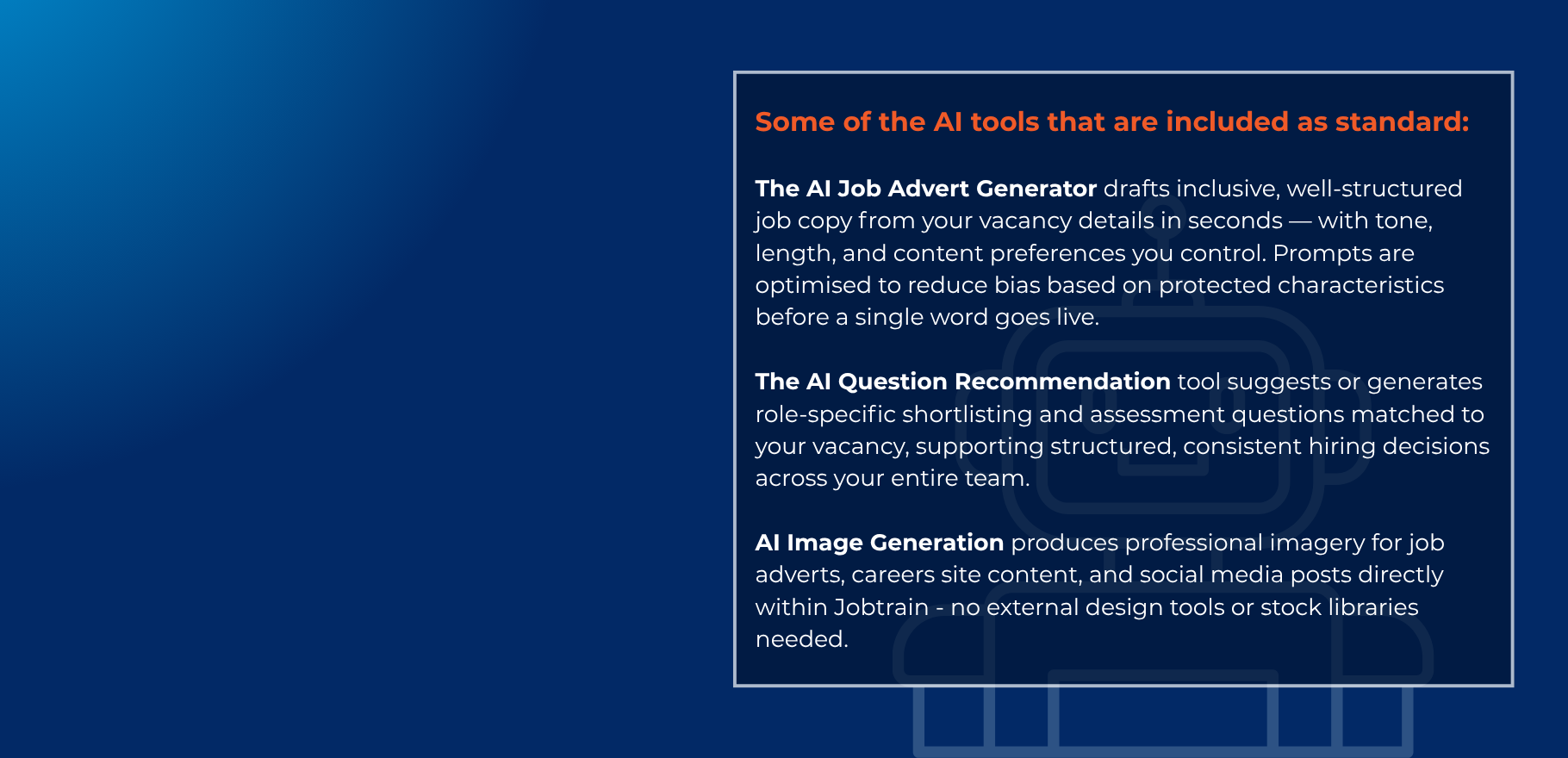 Everything runs securely inside Jobtrain. Your data never trains public AI models. You stay in control of every output – nothing is saved until you approve it. We work with organisations where AI governance matters – NHS Trusts, local authorities, care providers – so it’s rigorously tested to be compliant.